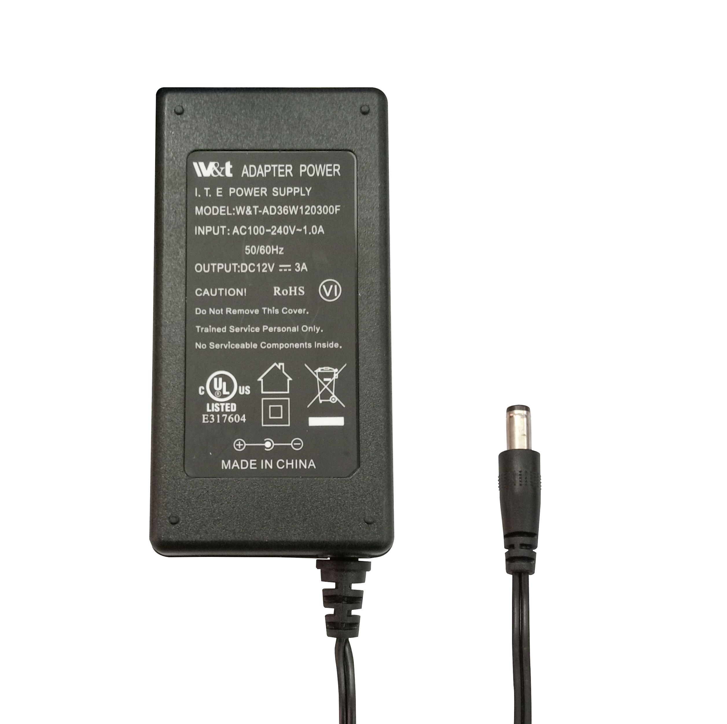 12V 3A AC/DC ADAPTER W/US PLUG, DOE GRADE VI ON THE ADAPTER