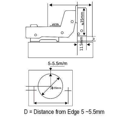 SC EURO HINGE WITH 3D PLATE INSET