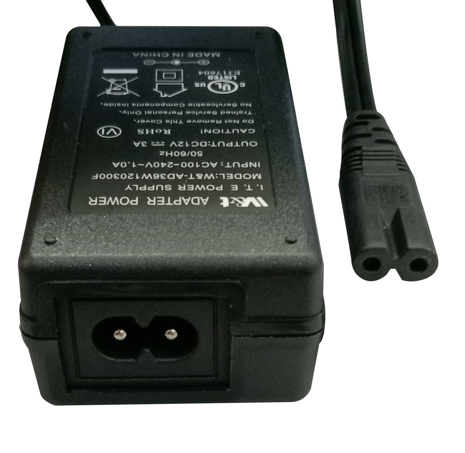 12V 3A AC/DC ADAPTER W/US PLUG, DOE GRADE VI ON THE ADAPTER
