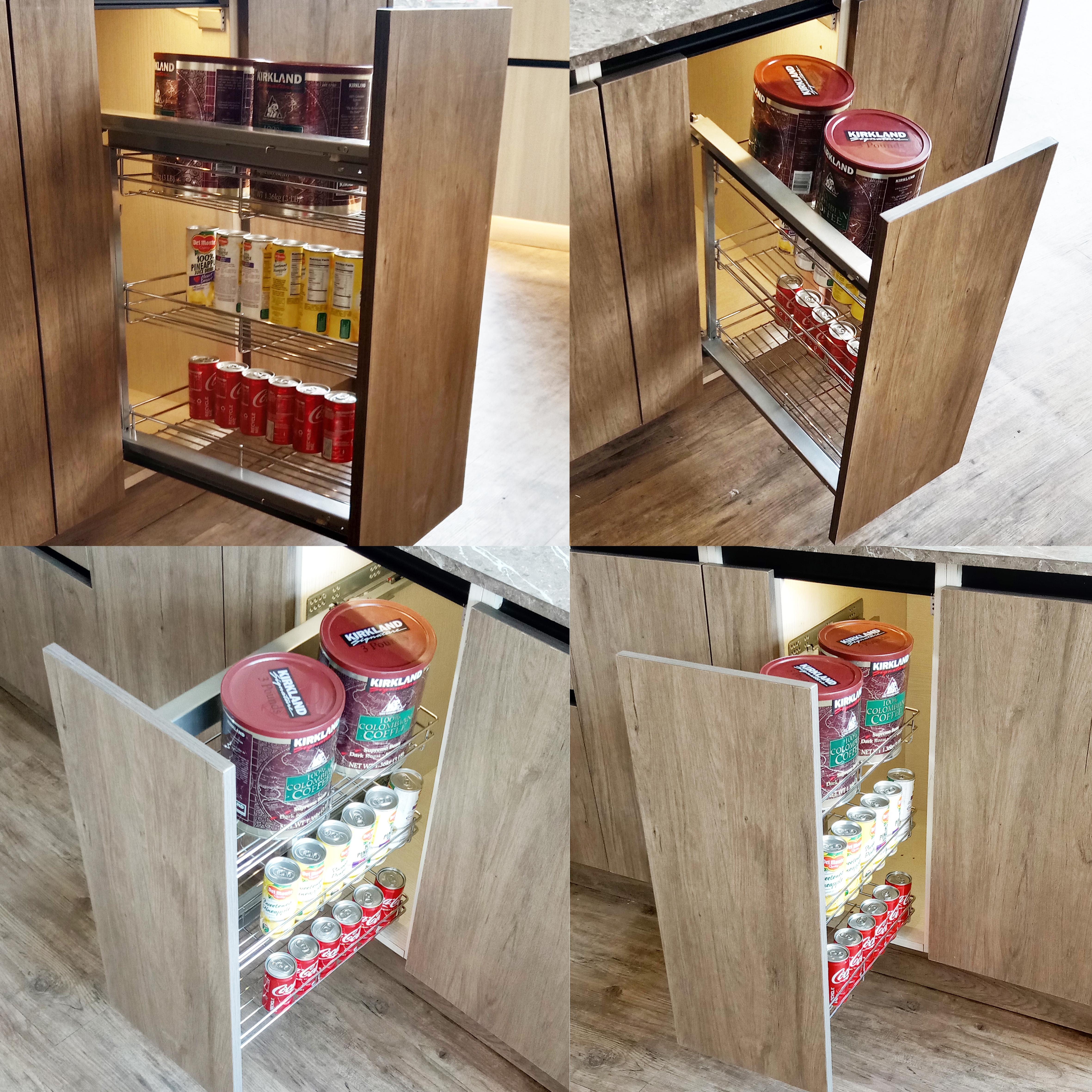 With an front pull-out basket , you can neatly store all cookware and bakeware goods without the hassle of digging around for what you need. This pull-out basket is perfect for small appliances, pots, pans, plates, crockery, canned food, and other various kitchen accessories.
