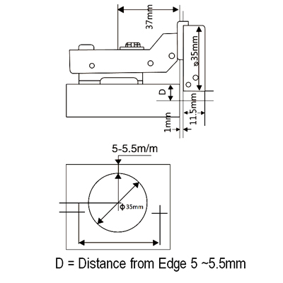 SOFT CLOSING EURO HINGE HALF (35MM)